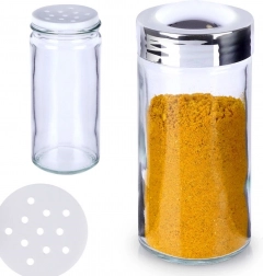 Sklenená korenička so sitkom je spoľahlivý pomocník na každodenné varenie. Odolné číre sklo umožňuje rýchlu identifikáciu obsahu a elegantný vzhľad sa hodí do každej kuchyne. Skrutkovacie viečko v metalickom vzhľade spolu s odnímateľným bielym sitkom zaistia pohodlné a rovnomerné sypanie.