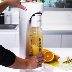 Domáci výrobník perlivých nápojov DRINKMATE AquaDream v bielej farbe vám umožní pripraviť perlivú vodu, limonády aj jemne perlivé víno za chvíľku a za zlomok ceny balených nápojov. Nastavíte si intenzitu perlenia, ušetríte až 800 plastových fliaš a vďaka bezpečnostnému ventilu a systému FAST LOCK je obsluha jednoduchá a spoľahlivá.