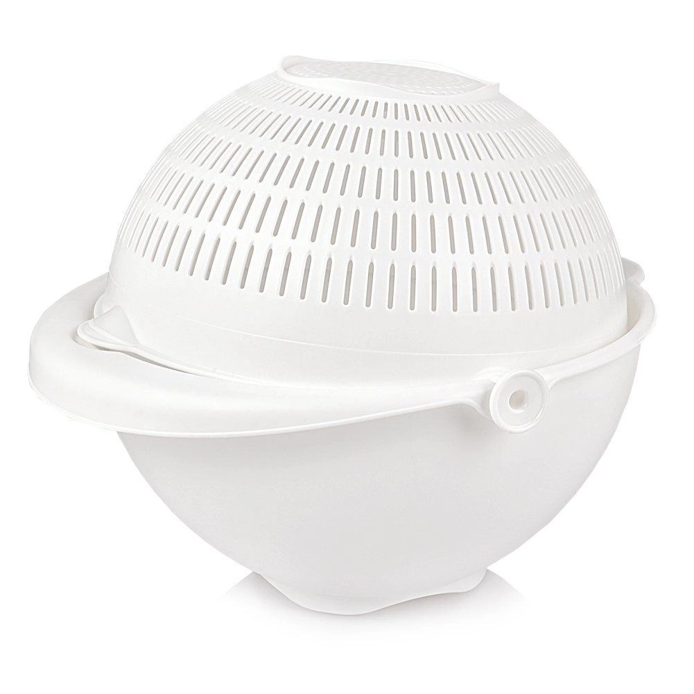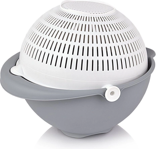 Praktická sada miska + cedník s otočným mechanizmom na jednoduché umývanie a scedenie ovocia, zeleniny aj cestovín. Odolné plastové prevedenie bez BPA, stabilná základňa a pohodlné uchopenie zaistia komfortné používanie aj rýchle čistenie v umývačke.