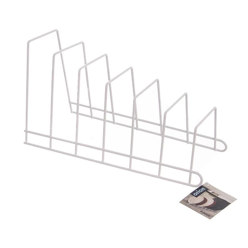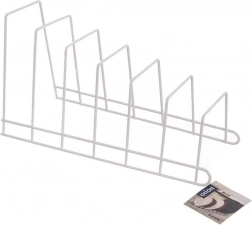 Udržte si poriadok v kuchyni vďaka kompaktnému stojanu s rozstupom na 6 pozícií. Otvorená drôtená konštrukcia drží pokrievky, plytké taniere aj dosky prehľadne a s rýchlym prístupom, zároveň bráni ich posúvaniu a poškodeniu. Umiestnite ho na pracovnú dosku, do skrinky alebo do hlbokej zásuvky.