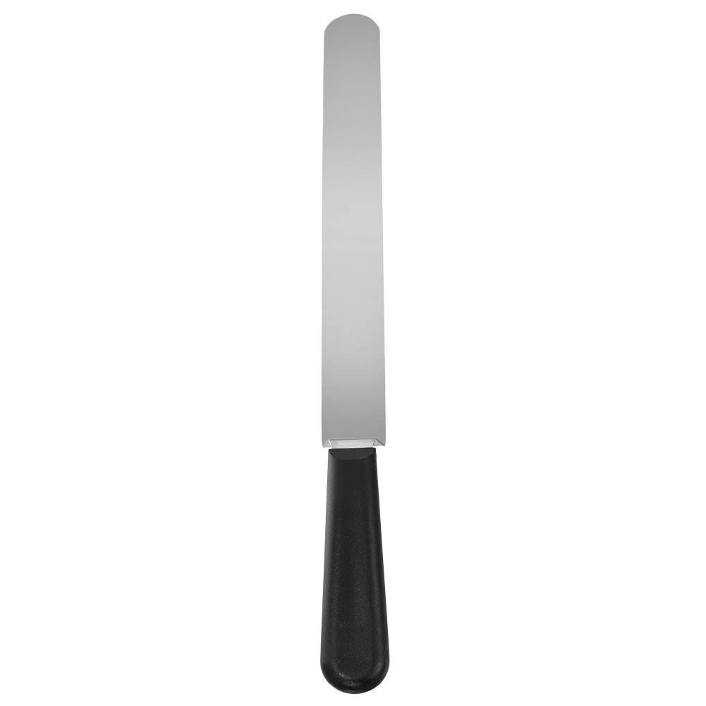 Táto cukrárska špachtľa kombinuje funkciu lopatky aj noža, takže skvele poslúži pri príprave, modelovaní a zdobení tort aj zákuskov. Vďaka kvalitnej nehrdzavejúcej oceli je mimoriadne odolná, zatiaľ čo ergonomická rukoväť v čiernej farbe zaisťuje istý úchop a pohodlnú prácu.