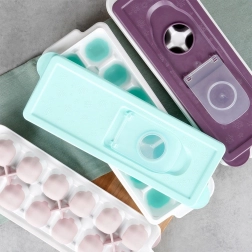 Táto kompaktná forma na ľad s vekom je ideálna na každodenné použitie aj domáce párty. Elastické dno umožňuje pohodlné vybratie kociek jedným stlačením, zatiaľ čo pevný okraj uľahčuje manipuláciu a prenášanie do mrazničky. Uzavierateľné veko s plniacim hrdlom minimalizuje neporiadok pri nalievaní vody a chráni obsah pred pachmi.