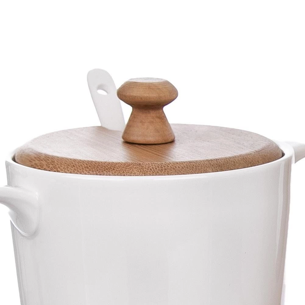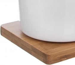 Mliečenka s ergonomickým uchom a presnou výlevkou umožní komfortné nalievanie, cukornička s bočnými úchytmi, dreveným vekom a porcelánovou lyžičkou sa postará o čisté a elegantné servírovanie cukru. Všetko je prehľadne umiestnené na stabilnom bambusovom podnose s madlom pre jednoduché prenášanie.