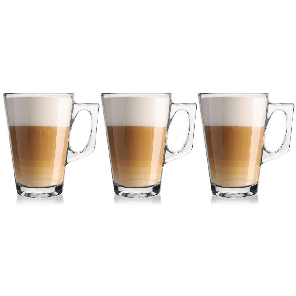 Elegantná sada troch pohárov s objemom 240 ml poteší milovníkov kávy aj čaju. Každý pohár je z odolného skla s pohodlným uchom a má moderný tvar pre štýlové servírovanie. Vhodné do umývačky, ideálne na horúce aj studené nápoje. Odolné sklo, pohodlné ucho, univerzálne použitie, moderný dizajn.