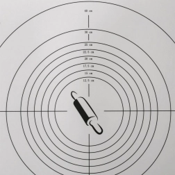 Podložka ponúka praktické mierky v cm po okrajoch a šablóny kruhov rôznych priemerov, ktoré pomôžu presne vyvaľkať cesto napríklad na pizzu alebo koláč. Materiál je odolný, hygienický, neabsorbuje pachy ani tekutiny a je úplne bezpečný pre kontakt s potravinami.
