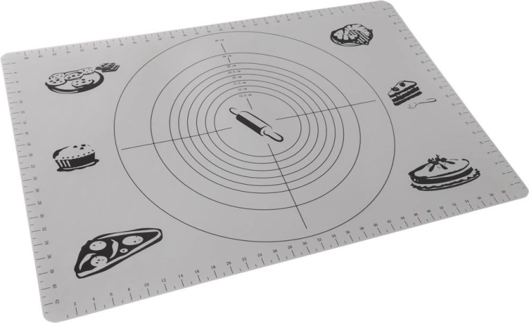 Praktická kuchynská podložka s rozmermi 65 × 45 cm s vyznačenými mierkami v centimetroch a kruhovými šablónami na presné tvarovanie cesta. Je ľahká, odolná, nepriľnavá a ľahko sa udržiava. Perfektná na prípravu pizze, pečiva aj cestovín, chráni pracovnú dosku a uľahčuje vaľkanie bez zbytočného podsypávania múkou.