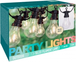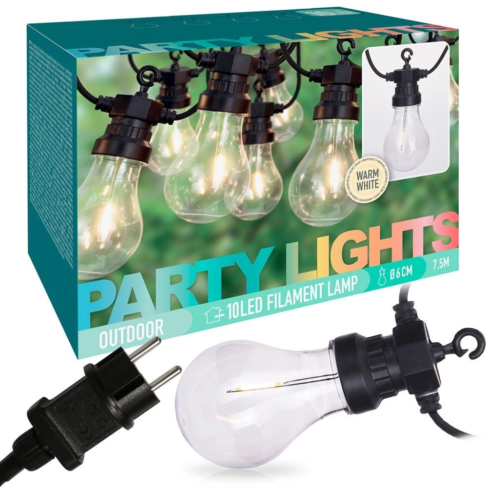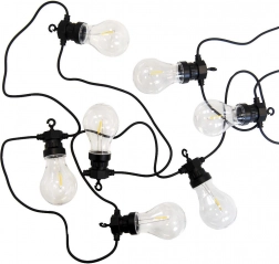 Štýlová záhradná LED girlanda s dĺžkou 7,5 m s 10 priehľadnými LED žiarovkami vytvára príjemnú atmosféru na terase, balkóne aj v interiéri. Vďaka krytiu IP44 je vhodná na vonkajšie použitie, má teplé biele svetlo, energeticky úspornú prevádzku a jednoduché zavesenie pomocou integrovaných háčikov.
