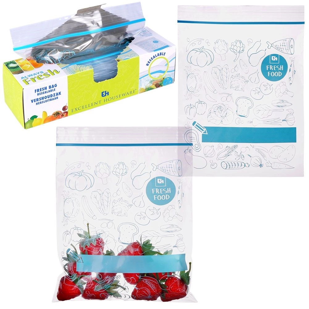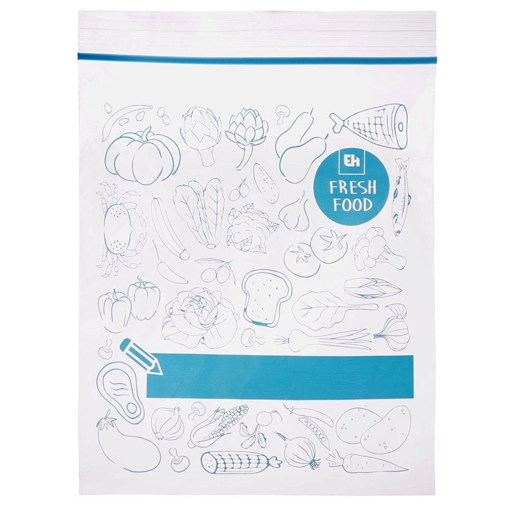 Univerzálne zipsové sáčky na potraviny sú skvelé na skladovanie ovocia, zeleniny, mäsa, pečiva aj sypkých surovín. Vďaka pevnému uzáveru sa obsah nevysype a neabsorbuje cudzie pachy. Priehľadné telo so štýlovou modrou potlačou a miestom na popis uľahčí prehľadné usporiadanie v kuchyni.