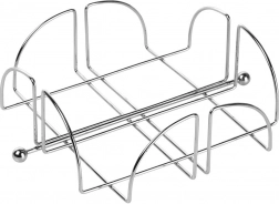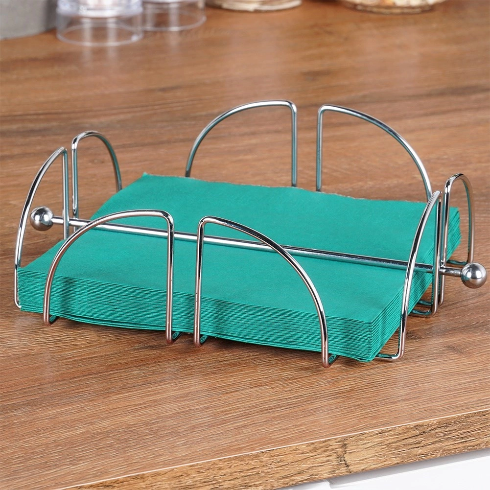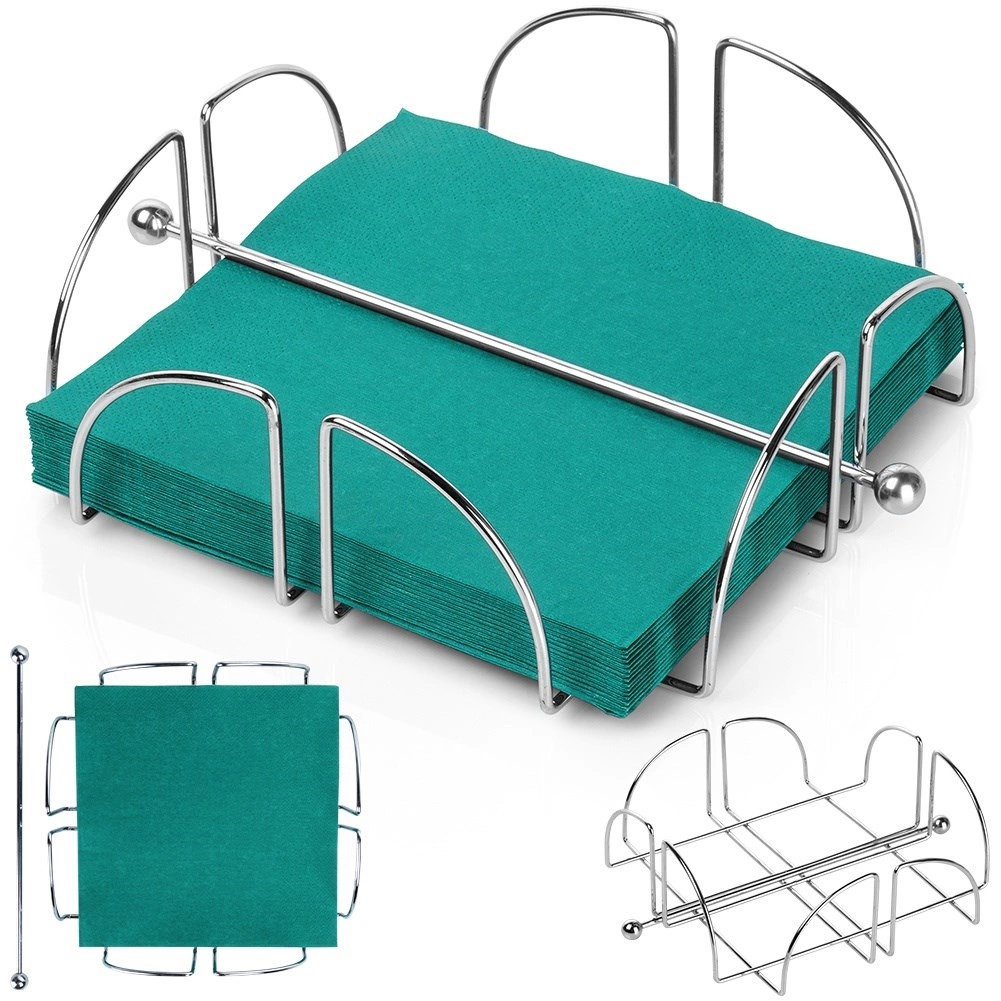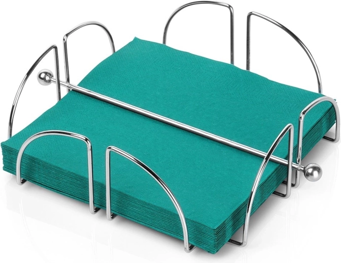 Praktický a štýlový stojan na servítky na každodenné použitie. Chrómovaná oceľ v striebornom prevedení sa ľahko čistí a odolá bežnému opotrebeniu. Otvorená konštrukcia umožňuje rýchle dopĺňanie a pohodlné odoberanie servítok, zatiaľ čo prítlačná tyč ich udrží úhľadne zorovnané.