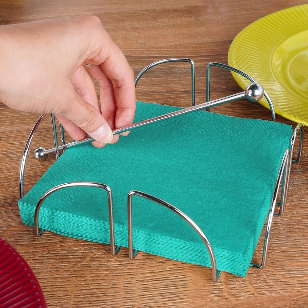 - Stabilná konštrukcia: pevný kovový rám a vyvážená prítlačná tyč pre isté uchytenie servítok.