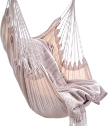 Odolná zmes 60 % bavlny a 40 % polyesteru je príjemná na dotyk, no zároveň trvácna a nenáročná na údržbu. Montáž do stropu alebo na trám je rýchla a intuitívna. Kreslo je ideálnou alternatívou ku klasickej hamake, ak nemáte priestor na dva kotviace body.