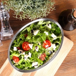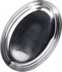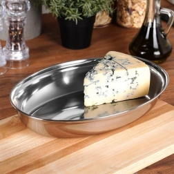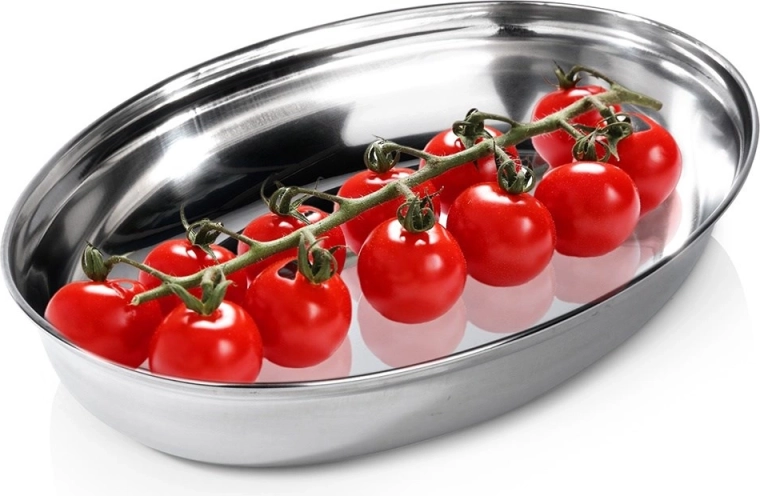 Praktický a štýlový oválny servírovací táck s hlbokým profilom je vyrobený z nehrdzavejúcej ocele v elegantnom striebornom vyhotovení. Odolá nárazom a bežnému zaobchádzaniu, takže je skvelou alternatívou ku skleneným miskám a tanierom. Hladký povrch sa ľahko udržiava v čistote a je bezpečný na kontakt s potravinami.