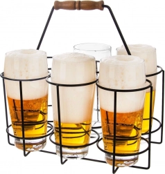 Minimalistická čierna konštrukcia z kvalitného kovu vyniká dlhou životnosťou a jednoduchou údržbou. Nosič je vhodný pre väčšinu štandardných pivných fliaš a pohárov a vďaka kompaktným rozmerom sa dobre skladuje.