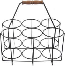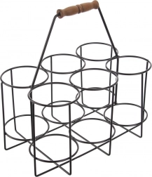 Odolný kovový košík na prenášanie fliaš či pohárov ponúka bezpečnú organizáciu a pohodlnú manipuláciu. Šesť samostatných krúžkových držiakov udrží nádoby pevne na mieste, zatiaľ čo drevená rukoväť zabezpečuje komfortný úchop. Skvelé riešenie pre domácnosť, záhradu, terasu aj servírovanie nápojov pri grilovaní.