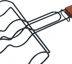 Dlhá drevená rukoväť poskytuje pohodlný a tepelne bezpečný úchop, takže môžete pokrmy obracať nad rozpálenými uhlíkmi bez obáv z popálenia. Vďaka otvorenému pletivu prúdi teplo rovnomerne a jedlo sa krásne prepečie aj s chrumkavou kôrkou.