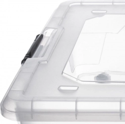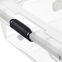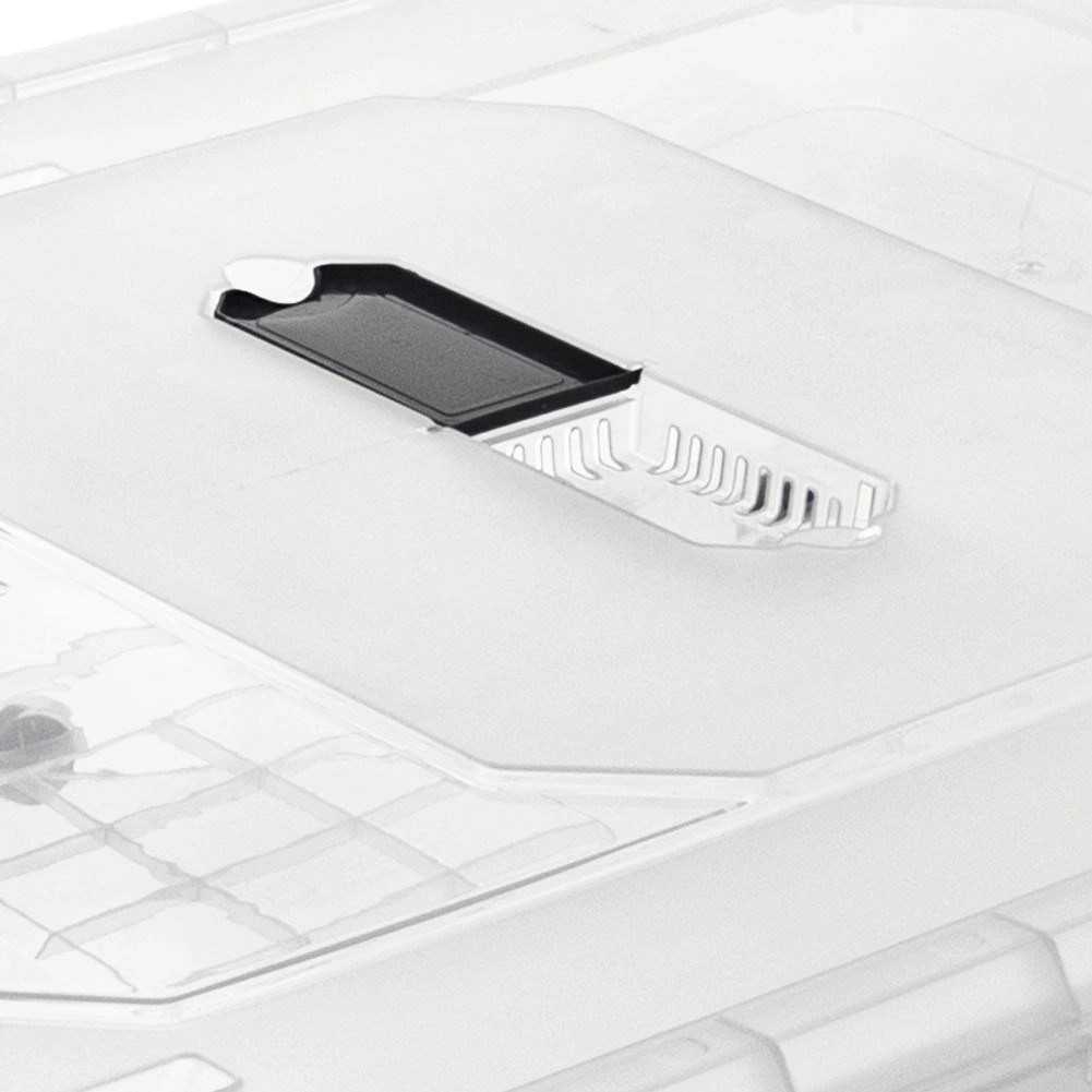 Pevné bočné klipy a presne lícujúce veko chránia pred prachom. Priesvitné steny uľahčujú rýchlu identifikáciu uložených vecí.