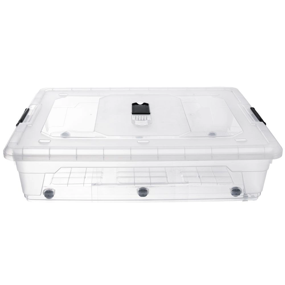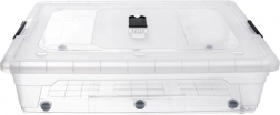 Využite priestor pod posteľou naplno. Tento nízky úložný box s objemom 50 litrov je vyrobený z odolného a číreho plastu, takže okamžite vidíte, čo je vo vnútri, bez potreby otvárania. Veko s robustnými bočnými klipmi drží pevne na mieste a chráni obsah pred prachom.