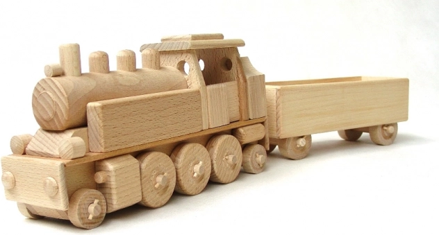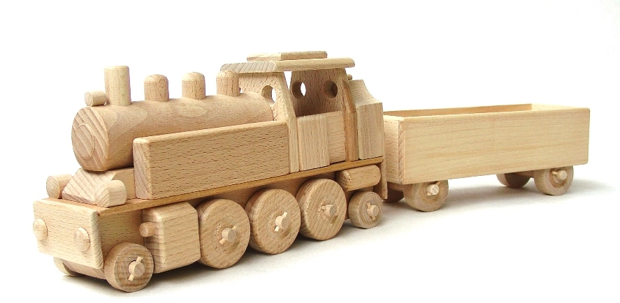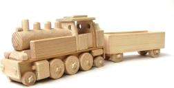 - Drevená parná lokomotíva s vagónom