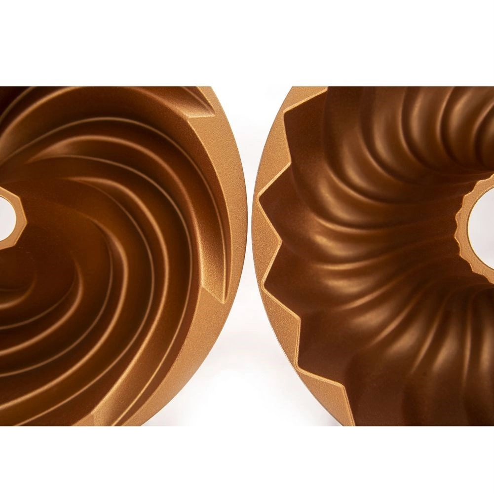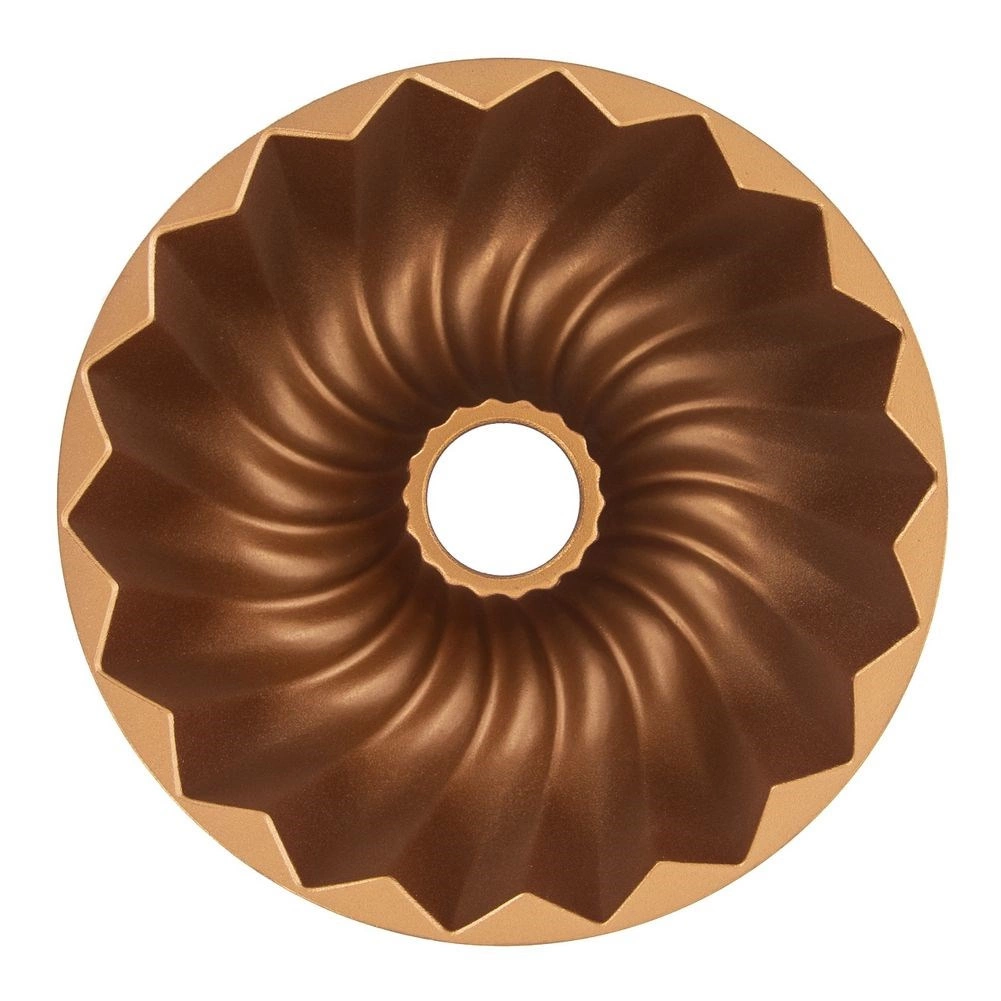 Elegantná forma na bábovku s komínom s priemerom 24 cm z kolekcie MARISSA z vysokokvalitného hliníka s dvojvrstvovým nepriľnavým povrchom PFLUON. Vďaka profilovanému dnu vytvoríte efektné dezerty a vďaka nepriľnavosti ľahko vyklopíte každý kúsok. Vhodná do plynových aj elektrických rúr, odolná do 200 °C, v medenom dekore pre štýlové pečenie.