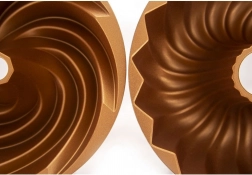 Objavte spoľahlivú formu na bábovku z kvalitného hliníka v medenom prevedení, ktorá vďaka komínu skvele rozvádza teplo a zaistí rovnomerné prepečenie. Dvojitá nepriľnavá povrchová úprava PFLUON uľahčuje vymazanie aj vyklopenie, takže sa môžete sústrediť len na chuť a vzhľad vašich dezertov.