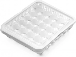 Transparentný kryt umožní rýchlu kontrolu obsahu a zároveň chráni vajcia. Rovná horná plocha je vhodná na bezpečné stohovanie.