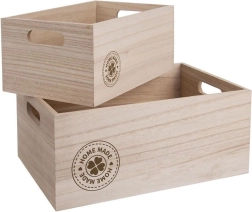 Drevená úložná debnička Home Made je vyrobená z prírodného dreva a vyniká odolnosťou aj nadčasovým vzhľadom. Vďaka praktickým rozmerom 31 × 21 × 13 cm ju ľahko umiestnite na policu, komodu či pracovný stôl. Bočné úchyty umožnia pohodlné prenášanie aj s obsahom.