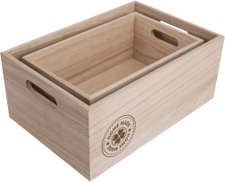 Praktická drevená debnička na prehľadné ukladanie drobností, kozmetiky, potravín či kancelárskych potrieb. Má rozmery 31 × 21 × 13 cm, pevnú konštrukciu a bočné úchyty na jednoduché prenášanie. Skvele sa hodí do kuchyne, obývačky aj kancelárie a poslúži aj ako štýlová dekorácia. Prírodné drevo, viacúčelové využitie, bočné rukoväte, odolné prevedenie.