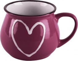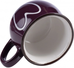 Každý hrnček zdobí výrazné biele srdce a tmavý okraj. Lesklá glazúra a oblé línie dodávajú eleganciu na každodenné aj sviatočné stolovanie.