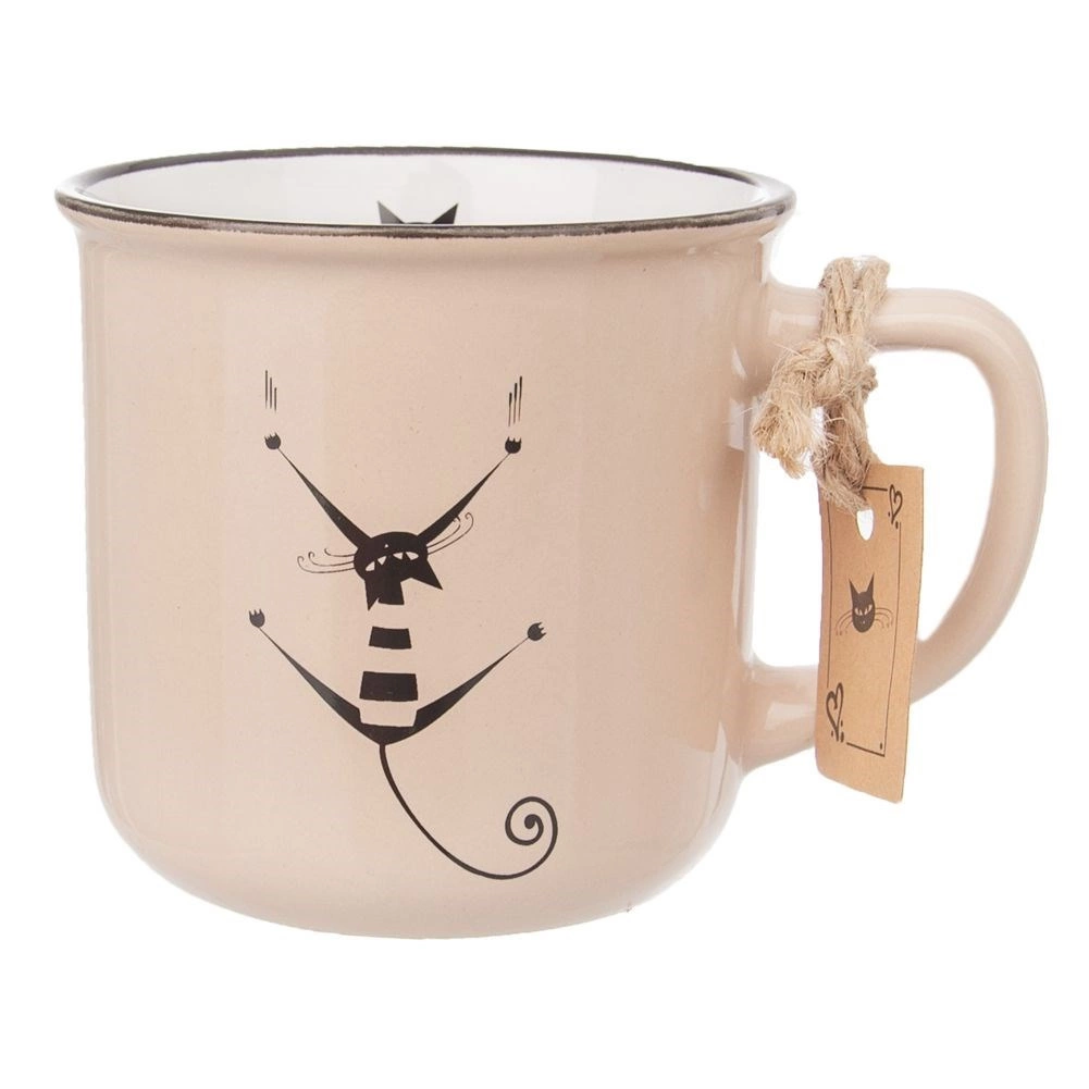 Objavte praktický a zároveň pôvabný hrnček s mačacím dekorom, ktorý je ideálny na každodenné pitie kávy, čaju aj ďalších nápojov. Vyrobený z kvalitnej keramiky v béžovej farbe s čiernym dekorom a bielym vnútrom, ponúka skvelú kombináciu štýlu a odolnosti.