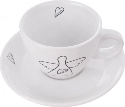Objavte štýlové a praktické šálky na espresso, ktoré skrášlia každý stôl. Minimalistický biely dizajn s čiernou líniovou kresbou anjela a srdca dodá vášmu kávovému rituálu jemnú eleganciu. Každá šálka má ergonomické ucho a tanierik zachytí kvapky aj udrží lyžičku či malý dezert.