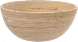 Miska je vyrobená z kvalitného bambusového dreva s hladkým povrchom a viditeľnými kruhovými letokruhmi, ktoré podčiarkujú prírodný vzhľad každého kúsku.
