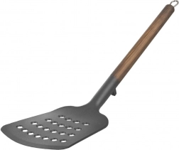 Obracačka WOODEN s rozmermi 34,5 × 9 cm je vyrobená z kvalitného termoplastu PBT, ktorý sa vyznačuje vysokou tuhosťou a odolnosťou. Kovová rukoväť s povrchovou úpravou v dekore dreva zaručuje pohodlný úchop a elegantný vzhľad, ktorý zapadne do tradičných aj moderných kuchýň.