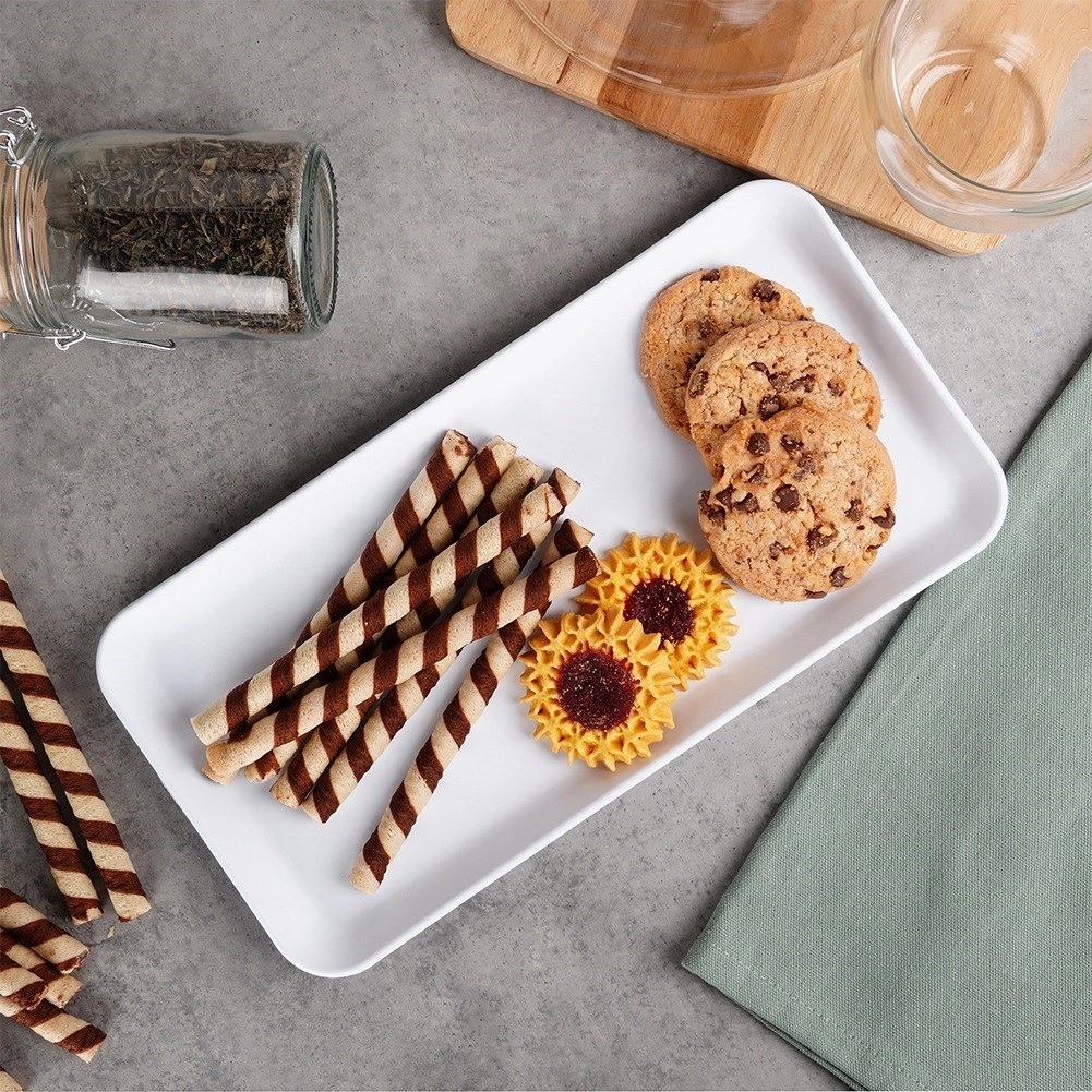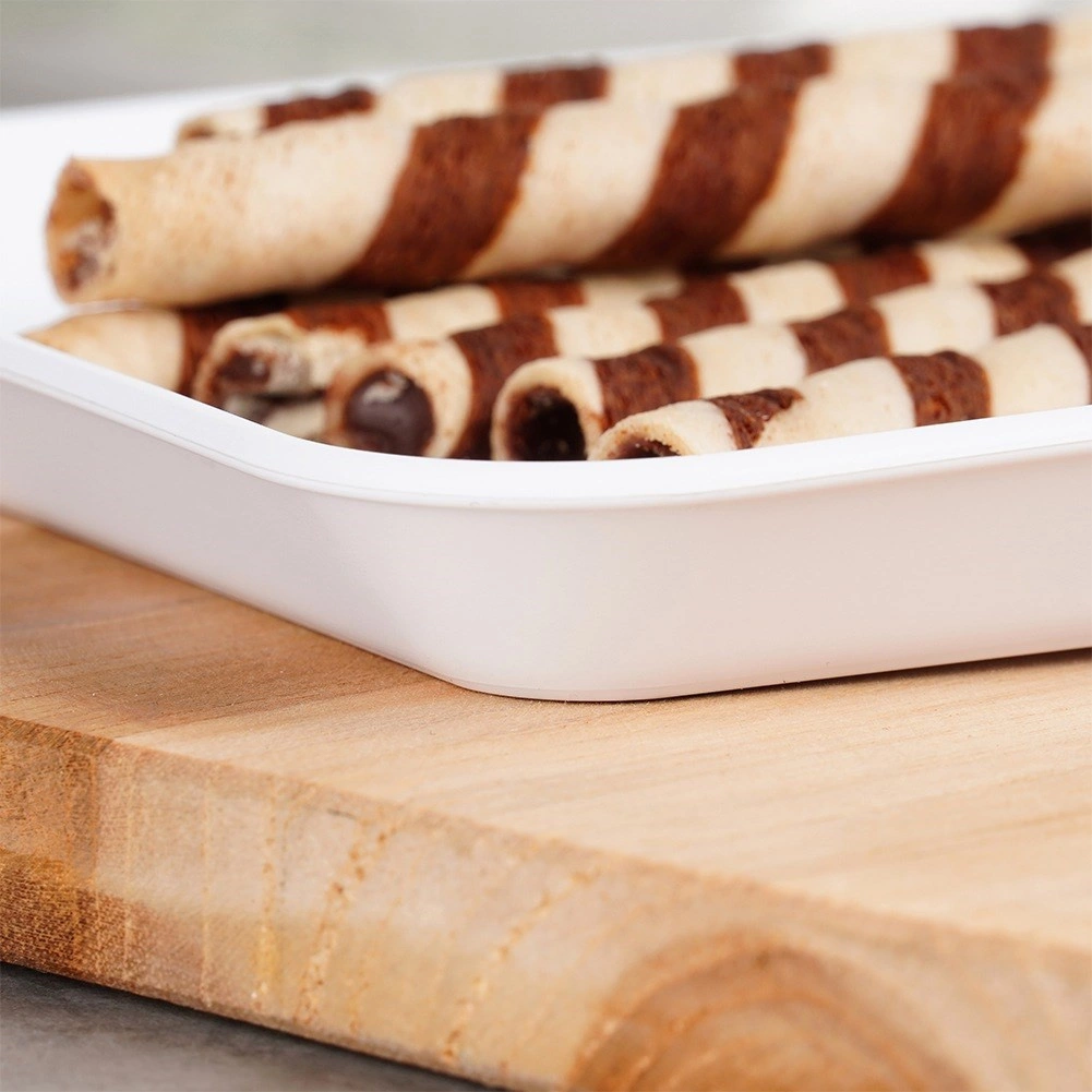 Veľkosť 29,5 × 15 cm s nízkym lemom udrží pochutiny pokope a uľahčí prenášanie bez neporiadku.