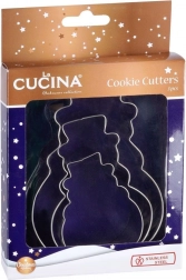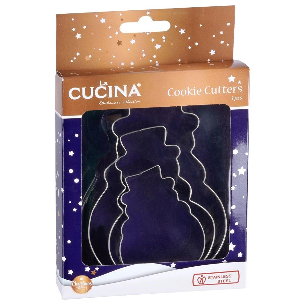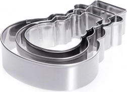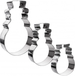 Sada troch kvalitných vykrajovačiek v tvare snehuliaka poteší každého milovníka pečenia. Vykrajovačky sú vyrobené z odolnej nerezovej ocele, vďaka čomu sú pevné, hygienické a pripravené na každoročný sviatočný maratón. Tri praktické veľkosti (veľká 13 × 8,5 × 2,5 cm, stredná 10 × 7 × 2,5 cm, malá 7,5 × 5 × 2,5 cm) umožnia vytvárať efektné vrstvené dekorácie aj sady sušienok.