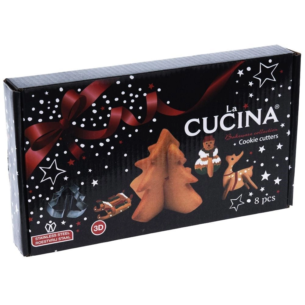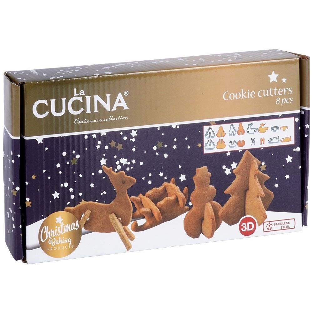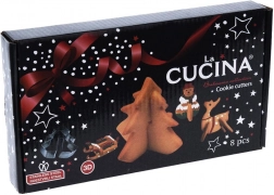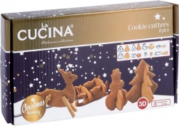 Sada obsahuje 8 kusov na prípravu 4 rôznych 3D motívov: vianočný stromček, snehuliak, sob a sane. Rozmery jednotlivých dielov sa pohybujú približne v šírke 4,5–9,5 cm a dĺžke 3,5–8,5 cm. Vykrajovače sú univerzálne – hodia sa aj na fondán či modelovacie hmoty na zdobenie tort a dezertov.
