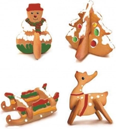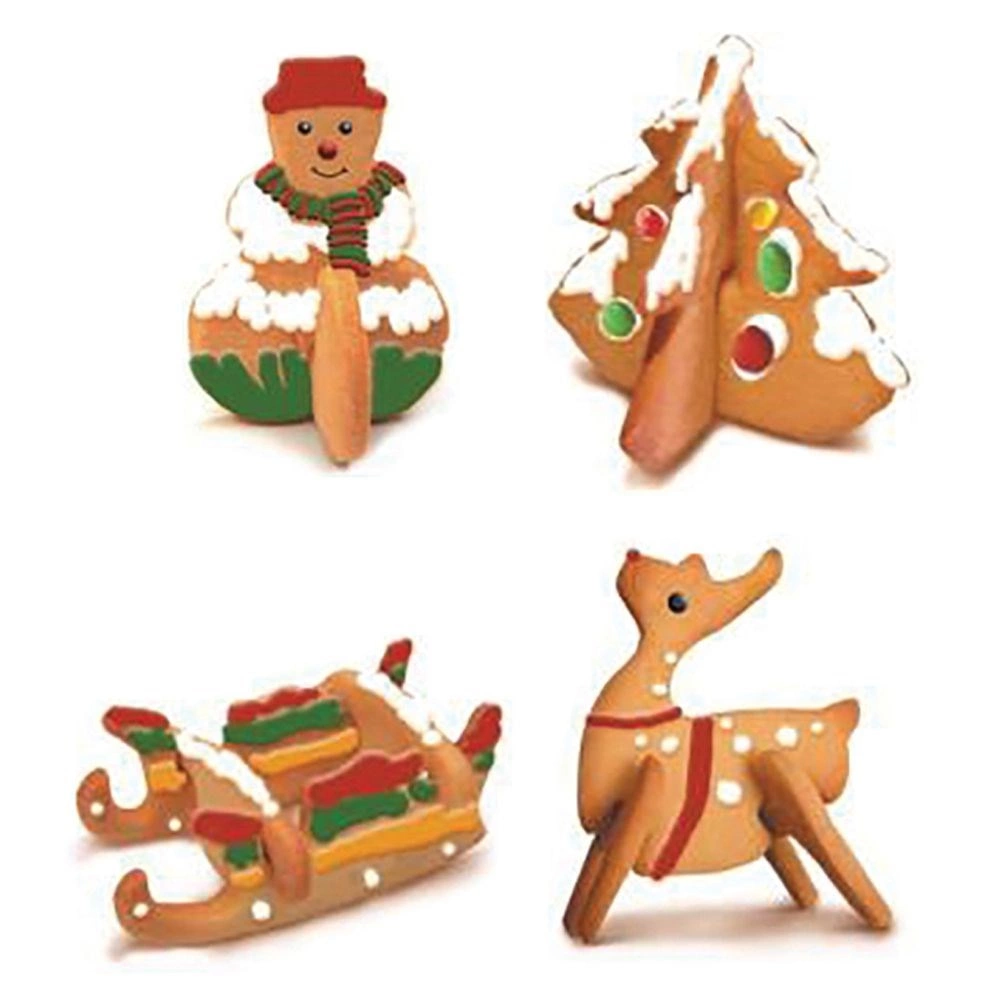 Sada vyrezáva diely, ktoré po upečení do seba zapadnú a vytvoria stojace figúrky – stromček, snehuliak, sob a sane. Ideálne na sviatočné pečenie a dekorácie.