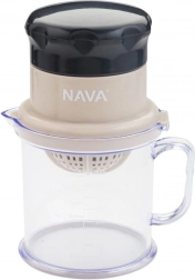 Vychutnajte si čerstvú šťavu kedykoľvek vďaka ručnému odšťavovaču NAVA Misty. Priehľadný zásobník s rukoväťou a výlevkou uľahčí zber a presné nalievanie šťavy, zatiaľ čo integrované sitko zadrží semienka a väčšie kúsky dužiny. Vďaka kompaktným rozmerom je odšťavovač skvelý na každodenné použitie aj cestovanie.