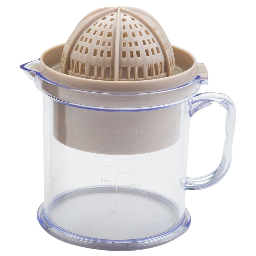 Praktický ručný lis na citrusy s odmerkou 400 ml, dvoma nadstavcami a jemným sitkom na zachytenie dužiny a jadierok. Pohodlné nalievanie vďaka hubičke a rukoväti, jednoduchá údržba a možnosť umývania v umývačke. Ideálne na citróny, limetky, pomaranče, ale aj ďalšie ovocie na čerstvé šťavy či domáce limonády.