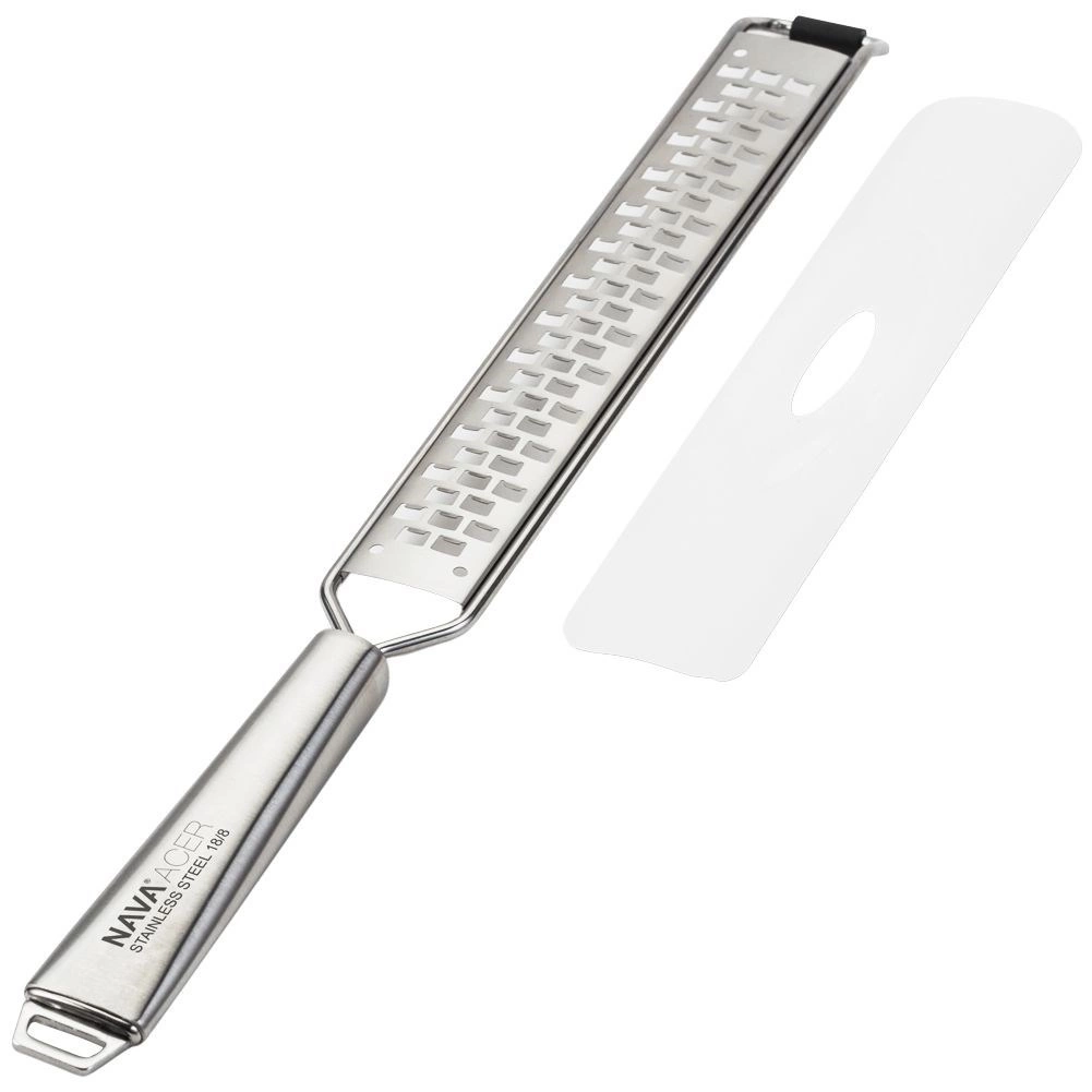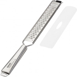 Univerzálne nerezové strúhadlo NAVA z radu Acer je navrhnuté na precízne strúhanie na jemné prúžky aj vločky. Dlhé telo s jemnými zubmi si poradí s parmezánom, citrusovou kôrou, cesnakom, čokoládou aj s korením ako zázvor, škorica či muškátový oriešok. Spodná gumová koncovka chráni riad pred poškriabaním a zvyšuje stabilitu pri práci.