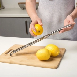 Ostré, jemné zuby z nehrdzavejúcej ocele 304 zaistia rýchle a rovnomerné strúhanie citrusovej kôry, tvrdých syrov aj čokolády.