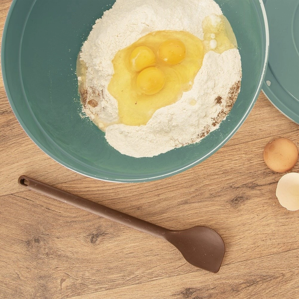 Táto hnedá silikónová kuchynská stierka je spoľahlivý pomocník na miešanie, roztieranie, obracanie aj servírovanie. Kvalitný silikón s vnútornou kovovou výstuhou zabezpečuje ideálnu kombináciu stability a pružnosti, takže pohodlne dosiahnete do misiek aj panvíc bez poškriabania povrchu.