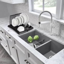 Praktický odkvapkávač na riad je nevyhnutným pomocníkom do každej kuchyne. Vďaka šikovnému členeniu ponúka vyhradené miesto pre 11 tanierov, priestor pre hrnčeky a poháre a integrovaný odtok, ktorý bezpečne odvádza vodu do drezu a chráni tak kuchynskú dosku pred vlhkosťou.