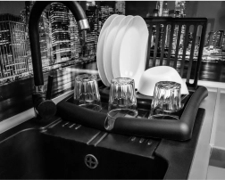 Moderné čierne prevedenie sa hodí do moderných aj klasických interiérov. Konštrukcia z kvalitného plastu je ľahká, pevná a bez rizika korózie. Po zložení odkvapkávač zaberie minimum miesta – ideálny do menších kuchýň aj domácností s obmedzeným priestorom.
