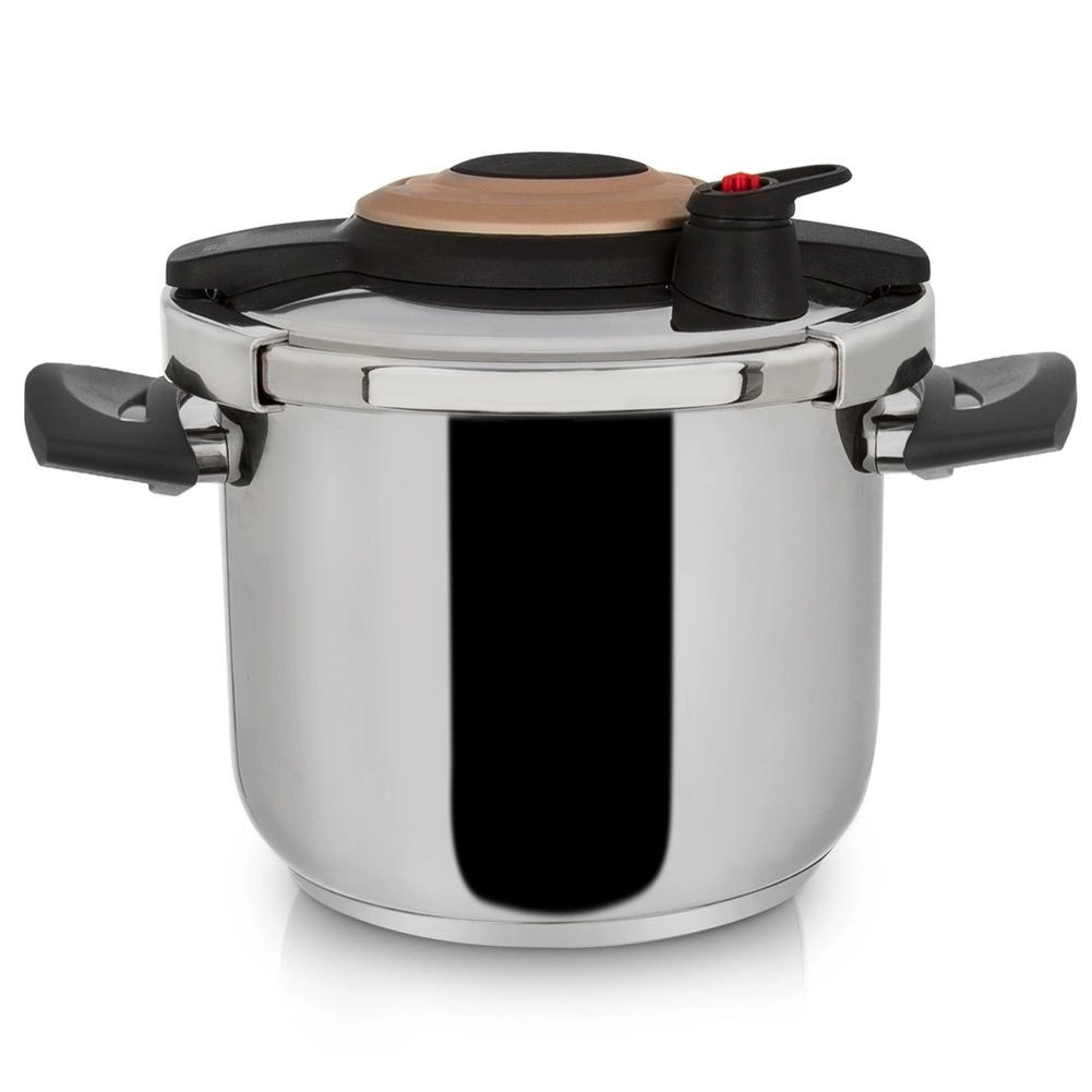 Tento vysoký tlakový hrniec z kvalitnej nehrdzavejúcej ocele skracuje dobu varenia na minimum a zároveň zachováva chuť aj živiny. Vďaka automatickému zamykaniu veka a dvom bezpečnostným ventilom varíte pohodlne a s maximálnou bezpečnosťou. Hrniec je vhodný do umývačky (bez veka) a ľahko sa udržiava.