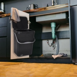 Kôš možno jednoducho zavesiť na dvierka skrinky alebo upevniť na stenu. Má kompaktný tvar, ktorý sa skvele zmestí pod drez a uvoľní miesto na podlahe.