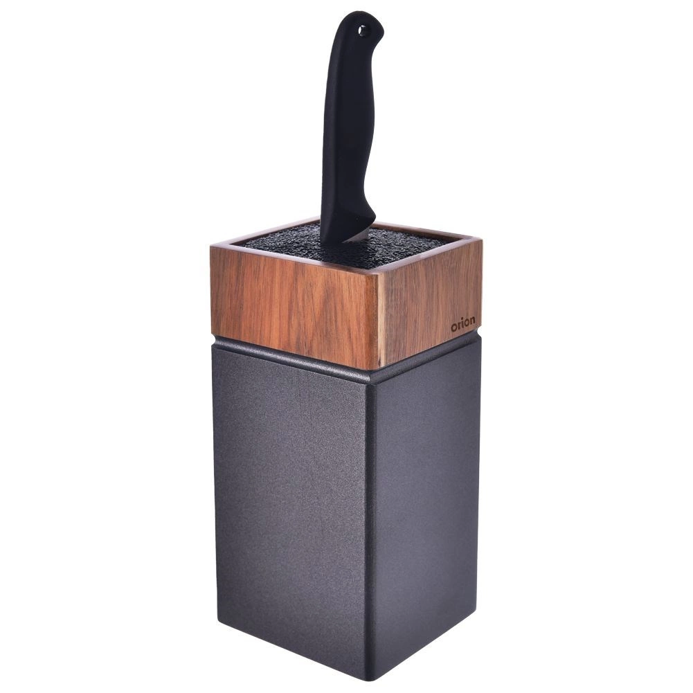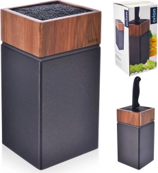 Stojan na nože WOODEN kombinuje pevné akáciové drevo s odolným plastom v elegantnej čiernej farbe. Univerzálna vložka z plastových vlákien umožňuje vkladať nože ľubovoľného tvaru a veľkosti bez rizika ich poškodenia. Vďaka kompaktným rozmerom 11 × 10,5 × 22,5 cm sa zmestí na každú kuchynskú linku a zároveň poskytne bezpečné a prehľadné uloženie.