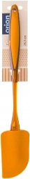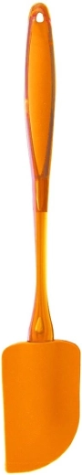 Praktická silikónová kuchynská stierka s dĺžkou 29,5 cm v oranžovej farbe je ideálna na roztieranie krémov, ciest a šľahačky, miešanie aj dôkladné stieranie z misy. Je vyrobená z odolného silikónu a má ergonomickú rukoväť pre pohodlné používanie. Je tepelne odolná od -40 °C do 220 °C, šetrná k nepriľnavému riadu a vhodná do umývačky.