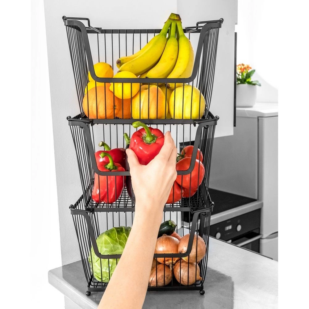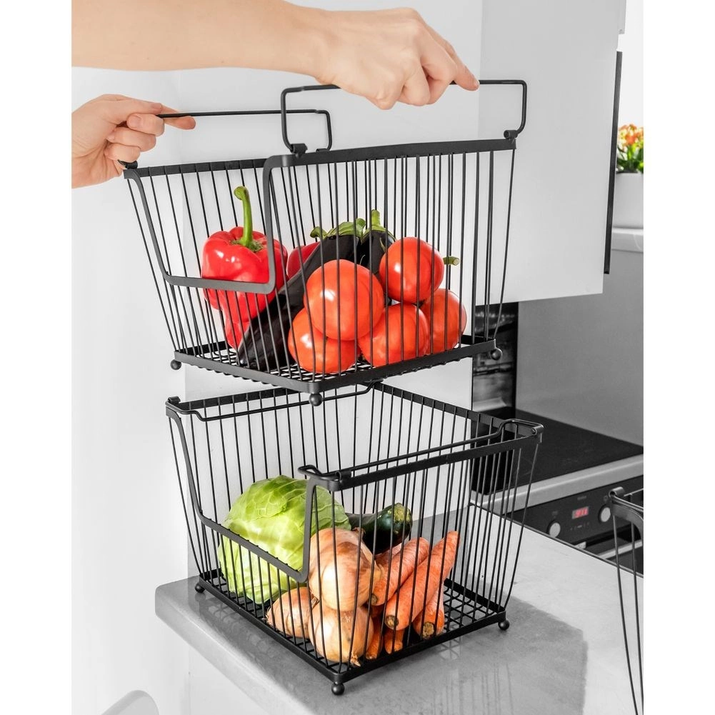 Viac košíkov možno ukladať na seba a vytvoriť praktický viacposchodový stojan, ktorý udrží kuchyňu prehľadnú a využije vertikálny priestor.