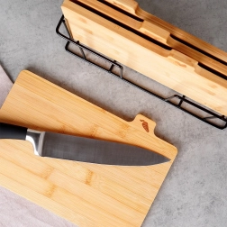 Bambus je tvrdý, tvarovo stály materiál, ktorý nepohlcuje pachy a rýchlo schne. Je šetrný k ostriu nožov a vhodný na každodenné používanie.