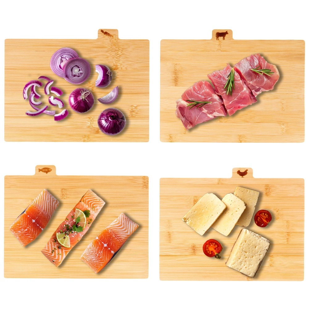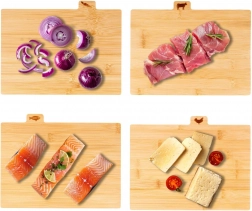 Každá doska má záložku s vygravírovanou ikonou pre konkrétny typ potravín – zeleninu, hydinu, mäso a ryby. Ľahko tak predídete krížovej kontaminácii a udržíte čistotu pri varení.